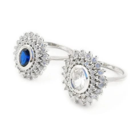 Diiva sormuksesta ei säihkettä puutu! Isokokoista sormusta koristavat kirkkaat, sekä valintasi mukaan tumman pinkit tai mustat zirkonit. Sormus kimaltelee kauniisti auringonvalossa eikä taatusti jää huomaamatta.