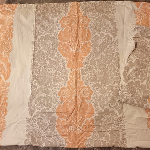 Marimekon unikko pitkät verhot. Mitat on 134x233. Siistit ja ehjät. Yhdessä kohtaa verhossa pieni rikko ylhäällä siinä missä verhot kiinnitetään nipsulla tankoon mutta ei näy sieltä. Pesty mutta ei silitetty.