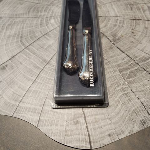 Kotimainen 3-osainen Chippendale juustoveitsisetti. Käsintehty, varret 830 hopeaa. Käyttämätön