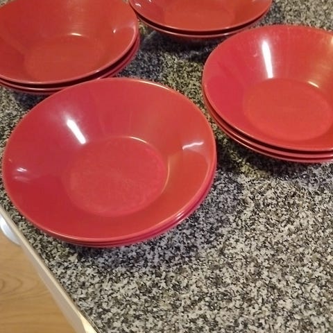 Iittala astiasto keltainen. Kokonaisuuteen kuuluu 6 ruokalautasta, 6 leipälautasta, 6 kulhoa, 6 mukia sekä sokerikko kannella ja kermakko. Astiat ovat poistunutta keltaista sävyä. Kunnossa ei moitteita.