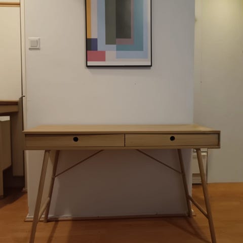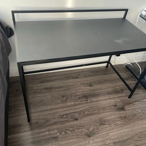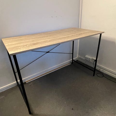Myydän muuton tieltä työpöytä Jysk VANDBORG 60x120 vaalea tammenvärinen, mustat metallijalat.