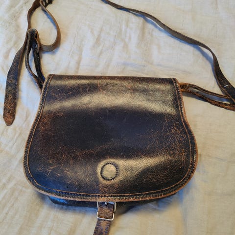 Myynnissä 1990 luvulta oleva nahkalaukku. Sisällä on tilaa ja lisäksi kynille ja muille on omat kohdat laukun sisällä jos haluaa laittaa jotain pikkukivaa.