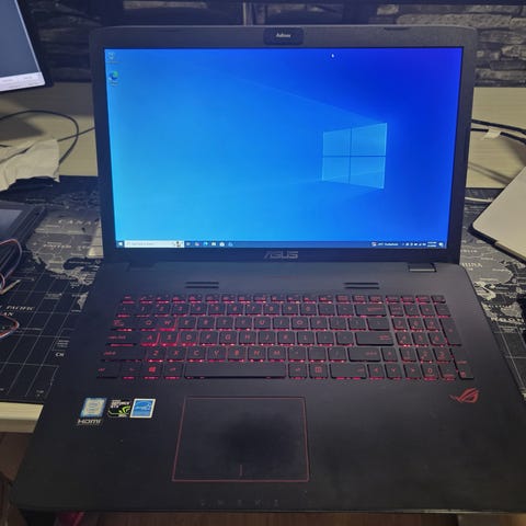 Asus ROG pelikannettava. Ostettu käytettynä pari vuotta sitten. Toimiva ja siisti. Pohjasta puuttuu kaksi täppää jotka pitää konetta paikallaan pöydällä mutta ei muita kauneusvirheitä.