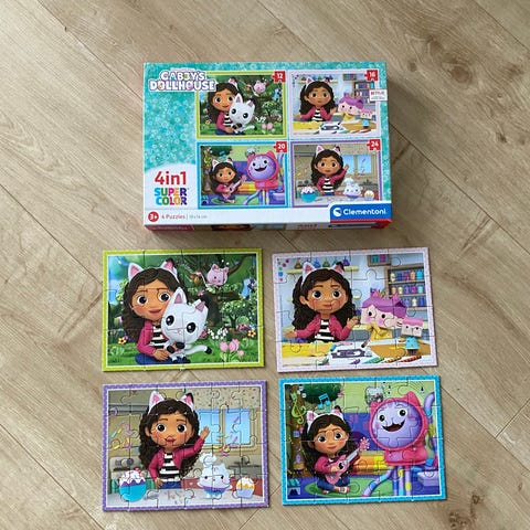 Kolme palapeliä Gabbys Dollhouse 3*48, ikäsuositus 5+. Siisti kunto ja kaikki palat löytyy.