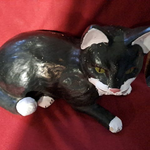 Kaunis kissa, valmistettu pronssista ja patinoitu mustaksi. Korkeus n. 14cm. Hintaan lisätään postikulut tai nouto Merikarvialta.