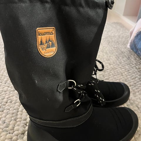 Myydään Kuoma-talvisaappaat koossa 44, käytännössä sopivat paremmin noin 45 koon jalkaan. Pohjallisen pituus noin 27,7 cm, varren korkeus noin 31,5 cm. Saappaat ovat erittäin hyvässä kunnossa ja niitä on käytetty vain vähän. Sisävuori on siisti, ei kulumia tai hankaumia kantapään alueella. Pohjat hyvässä kunnossa. Mukana laadukkaat Respecta-pohjalliset, jotka parantavat istuvuutta ja lisäävät käyttömukavuutta. Kuvat ovat osa kuvausta.