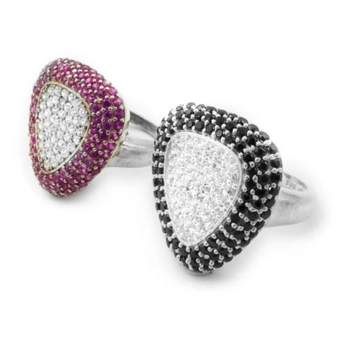 Kaunista hopeasormus koristavat valintasi mukaan tumman pinkit tai kirkkaana hehkuvat lasizirkonit.