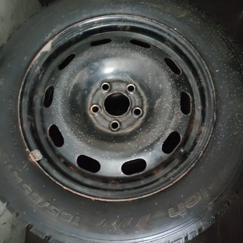 3 x Pirelli ja 1 x Tiger renkaat peltivanteilla.