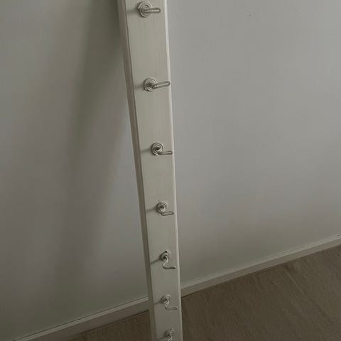 Kolmelle lapselle omat lokerot ja naulakot esimerkiksi ulkovaatteille.