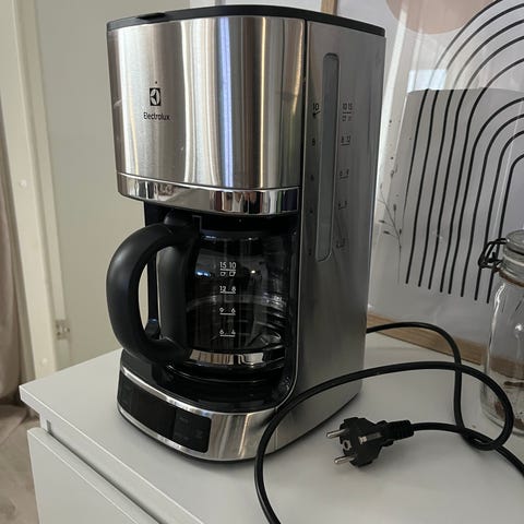 Electrolux kahvinkeitin lasikannulla. Ruostumattomasta teräksestä ja muovista valmistettu runko, irrotettava lasikannu mitta-asteikolla. Laitteen etuosassa on digitaalinen näyttö ja painikkeet ajastinta ja keittoasetuksia varten. Kahvinkeittimeen kuuluu erillinen Pure Advantage -vedensuodatin, joka asennetaan vesisäiliöön. Soveltuu suodatinkahvin valmistukseen kotikäyttöön. Veden suodatin uusi laitettu viimeisen käytön jälkeen vesisäiliöön. Alkuperäinen laatikko, jossa voin postittaa. Nouto sopimuksesta Kunnas tai Kauppakeskus Karisma.
