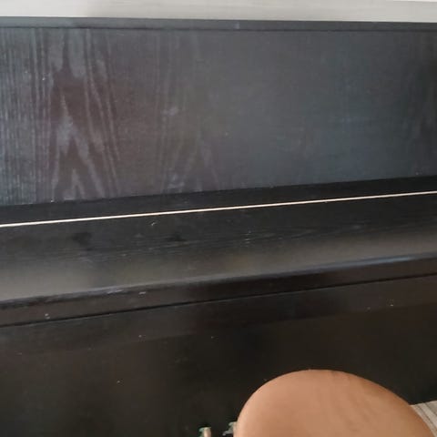 Koneisto ehjä mutta ollut virittämättä nyt melko kauan. Vaatii varmasti pari kertaa. Pinta saanut ed. muutossa pari jälkeä, muutoin ehjä.