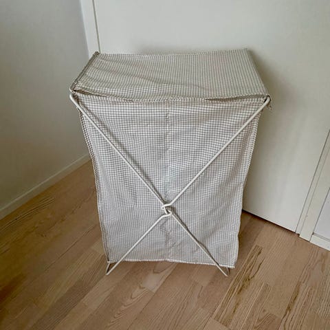 Valkoinen pieni poljinroskakori Ikean Toftan malli. Pyöreä roskis, jossa polkaisten avautuva kansi. Sopii esimerkiksi kylpyhuoneeseen.