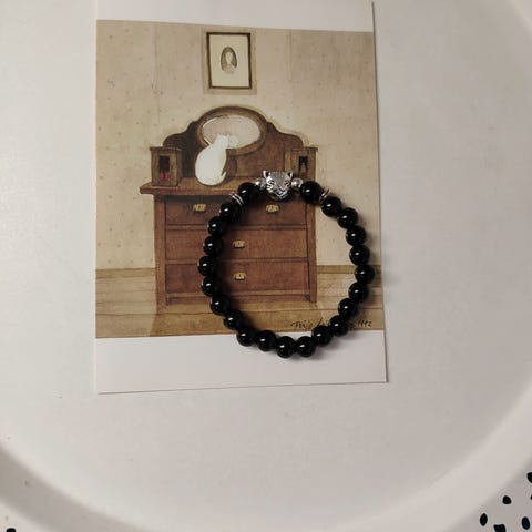 Normaalin kokoinen uusi kissa aiheinen postikortti+uusi kissa aiheinen rannekoru