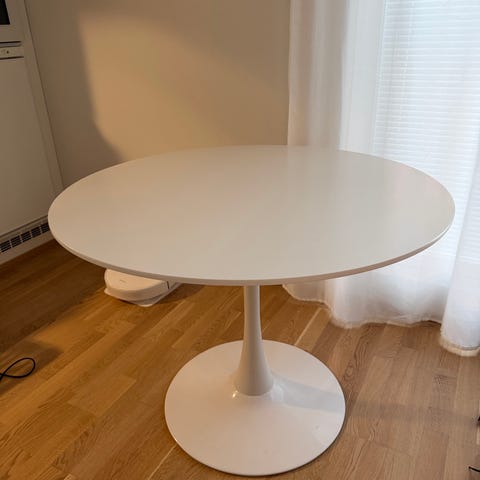 Myydään halvalla valkoinen pyöreä ruokapöytä. Ostettu ikeasta alkuperäinen hinta 179€.