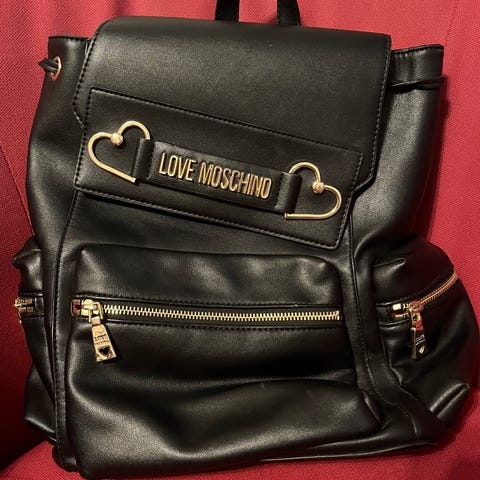 Loistava Love Moschino reppu tai käsilaukku.Uusi, mukana erillinen brändilappu ja pölypussi.HUOMIO: Entinen myymälän esittelymalli, kevyt kuluma vetoketjun yläpuolella olevan reunan kohdalla. Kuivahtanut vegaaninen nahka, katso kuva, ei juuri erotu.Väri voi hieman poiketa kuvien väristä.Mitat.Korkeus: ±30 cmLeveys: noin ±27 cmSyvyys: ±12 cmVakuutettu, lähetetty track & trace -seurannalla.