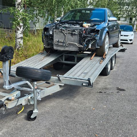 Autotraileri 60e vrk Lava 5.4x2 kippaava kärry ei tarvitse ajosiltoja helppo kuormata vinssi 4500kg langaton kaukosäädin merkki boro wenus rengas sekä sidontaliinat sisältyy vuokraan
