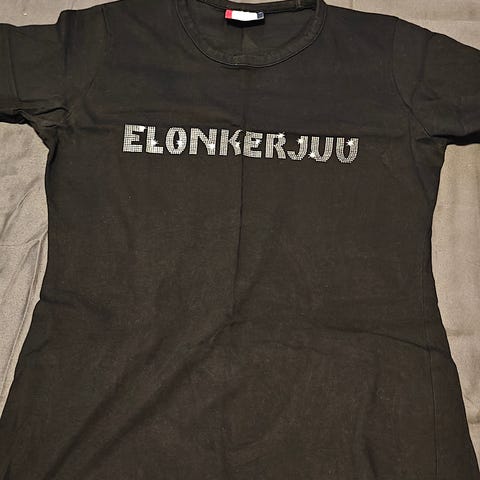 Elonkerjuu T-paita. Muuten siisti, mutta kainaloissa kellertävää.