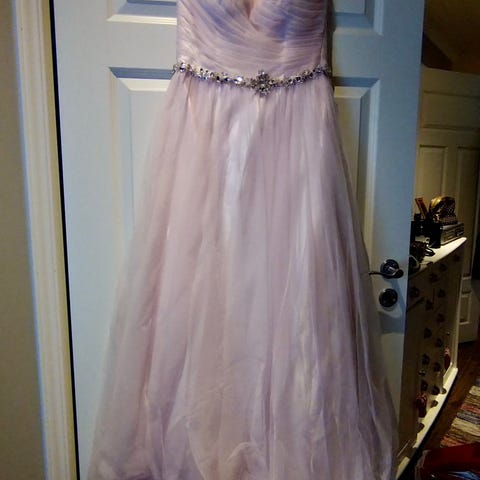 Zazabella ilta-/juhla-/vanhojen mekko. Koko 34, mutta menee myös S-kokoiselle nyörien ansiosta. Mekossa on tyllihame usealla kerroksella ja koristeellinen yläosa. Väri on vaalean turkoosi. Tyllin alla valkoinen satiini, joka mukava iholla. Yhdet tanssit tanssittu. Helman ihan alaosassa vähän päivän aikana tullutta normaalia kulumaa. Saa tulla katsomaan ja sovittamaan!