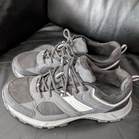 Jalas juoksukengät, koko 42. Väri pääosin musta harmailla yksityiskohdilla. Nauhakiinnitys ja kuvioitu kumipohja, joka tarjoaa pitoa juoksuun ja kävelyyn. Sopivat juoksuun ja muuhun liikuntaan sekä vapaa-aikaan.