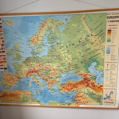 Hakusanat: koulutaulu kansakoulu opetusväline koulukartta kartta maailma maa maat maanosat maantieto englanti iso-britannia taulu sisustus englanti uk United Kingdom great britain