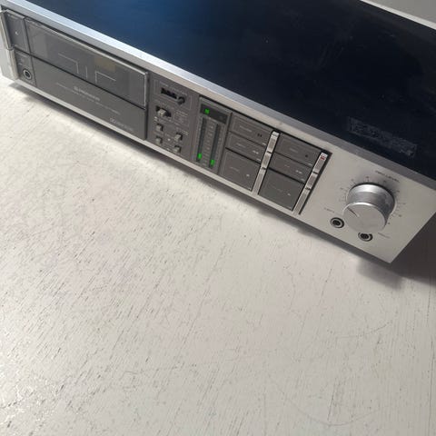 Vanha kasetti dekki keräilijälle,tosi käytössä 80 luvulla,sen jälkeen pölyä keräämässä,virrat tulee mutta ääni vouvaa eli kuminauhan tai kumisen telapyörän vaihtoa on arvio.Tarjousten mukaan