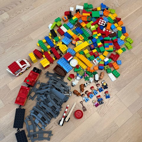 Sekalainen setti dubloja, löytyy eläimiä ja rakennuspalikoita yms