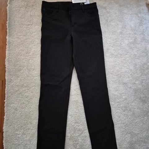 Mustat leveälahkeiset housut,lahkeen ympärysmitta alareunasta 57cm,lahkeenpituus haara-lahje 84cm,vyötärönympärys 77cm.