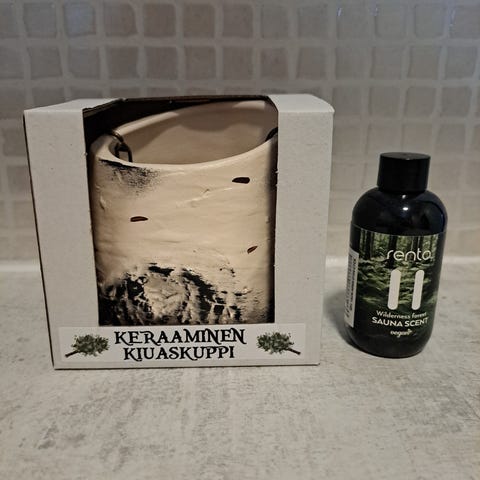 Kiuaskivien sekaan tarkoitettu Hukka Saunakko vuolukivinen tuoksukuppi.