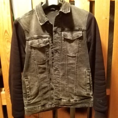 Ehjä ja hyväkuntoinen Farkkutakki, takkia on valmiiksi kulutettu ja se on pesty. Takissa on ollut kangasmerkkejä kiinni.