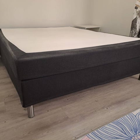 Jenkkisänky on ostettu askosta tai maskusta, noin 6 vuotta sitten. Petauspatja on tenstarilta, sitä on elvytetty niin, että leikattu neljään osaan ja laitettu kulmiin huonot kohdat, se on siis liimattu kasaan, ei ratkea vaikka voimamies sitä repisi. Petauspatjan kangas näyttää elämää nähneeltä, mutta ihan on puhdas ja kelpuuttaisin sen tuollasenaan.