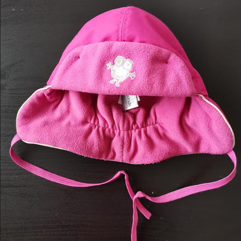 Fredriksonin ihana lepakkohattu, vähälle käytölle jäänyt söpöstelyhattu. Päällinen pehmoista nahkajäljitelmän oloista kangasta, sisällä karvavuori.