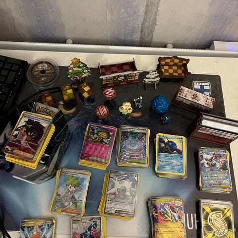 Myydään isompi erä Pokémon-kortteja.