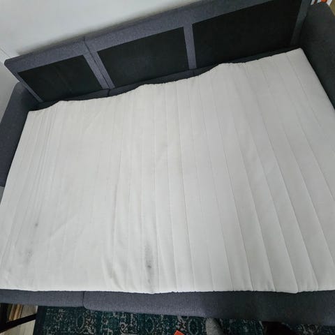 Patjassa on muutamia pieniä tahroja, jotka näkyvät kuvissa.