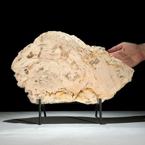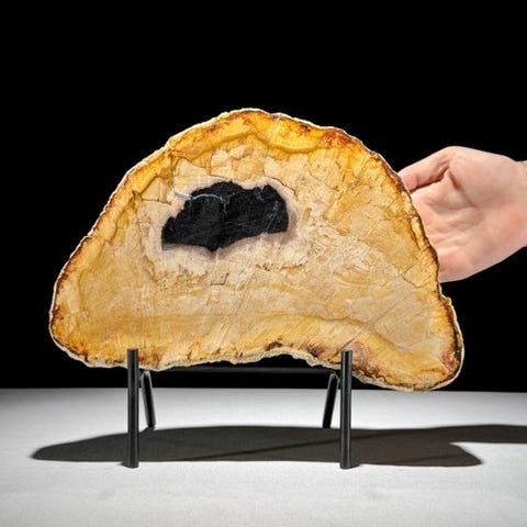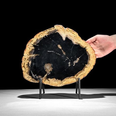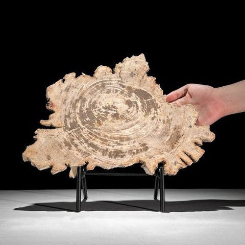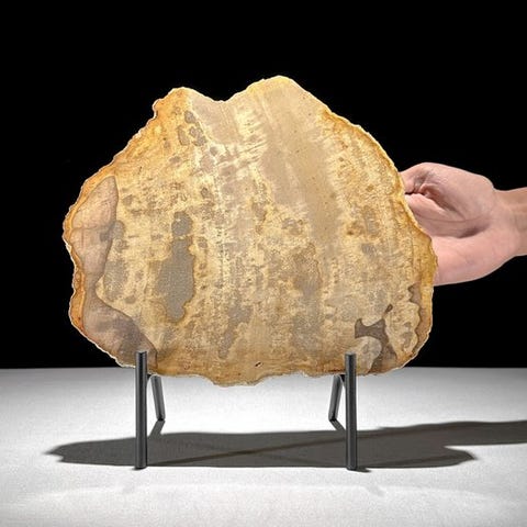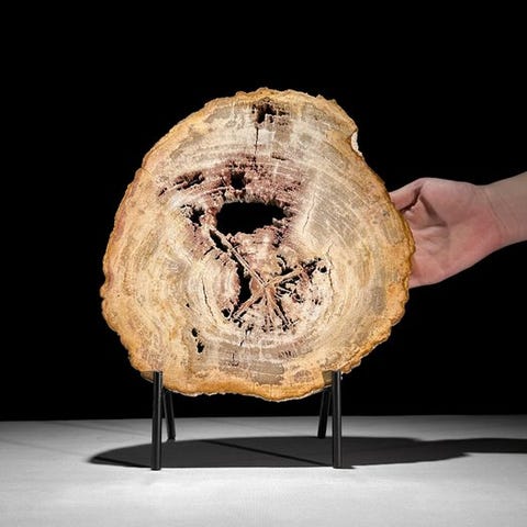 Upea petrifioituneen puun viipale räätälöidyllä jalustalla. - Kivettynyt pu