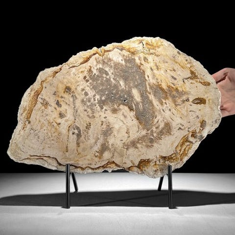 Upea suuri pala fossiloitunutta puuta räätälöidyllä jalustalla.Kivettynyt puu on mineraalisoitunut kappale puusta, joka on muodostunut, koska puut kaatuivat ja peittyivät maaperän tai hiekan kerrokseen. Usein tämä tapahtuu luonnonkatastrofin seurauksena. Kivettyneen puun värit riippuvat maaperän tai hiekan mineraaleista. Jokainen mineraali luo oman värinsä. 'Kivettyminen'-prosessi varmistaa, että kaikki ominaisuudet, kuten solmut, kuori ja vuosirenkaat, säilyvät. Mahdollisesti hajoava prosessi kaukaisessa menneisyydessä voi johtaa upeisiin kristallimuodostelmiin, usein monivärisinä.Lähes oikeat mitat jalustan kanssa# Korkeus: 24 cm - Leveys: 23.5 cm - Viipaleen paksuus: 1.8 cmNoin mitat ilman jalustaa.# Korkeus: 19 cm - Leveys: 23,5 cm - Viipaleiden paksuus: 1,8 cmNOITE:Huomaa, että yksi kuvista on otettu tummassa studiolla, ja värit voivat vaihdella ympäristön mukaan.Paino, joka mainitaan, sisältää pakkausmateriaalin.LähetysKohde lähetetään seurantanumerolla DHL Parcelin, DPD:n tai postNlin kautta. Seuranta päivittyy Catawiki-luettelossasi, kun pakettisi on jätetty postiin.Ole hyvä ja tarkista säännöllisesti välttääksesi pakettisi palautumisen meille, jolloin ostaja vastaa toisen lähetyksen toimituskuluista.Seurantaan Espanjaan ja Portugaliin käytä tätä linkkiä ja lisää Catawiki-erästäsi saatu seurantanumero.https://clientesparcel.dhl.es/LiveTracking/HomeME EMME YHDISTÄ TOIMITUKSIA!!!Jos sinulla on kysyttävää paketistasi, ota meihin yhteyttä Catawiki-viestipalvelun kautta. Pyrimme vastaamaan kolmessa työpäivässä.