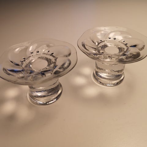Nuutajärven kaksi lumme kynttilänjalkaa. Käytössä olleet, suurimmat steariinit puhdistettu.