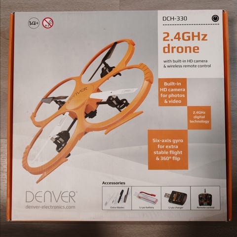 Dronea lennätetty muutaman kerran pikkukorkeuksilla. Ei ole törmäilty mihinkään tai pudotettu korkealta. Toimiva kampe. Aloittelijoille taikka perheen nuorille sopiva drone.