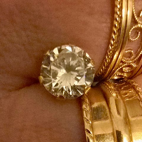 14 karaatin kultaa (leima 585) ja timantit vaaleanpunaiset.