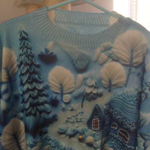 ihanat kirkkaat värit ja kuviot neuleessa. . Koko XL, monivärinen. Sopii mainiosti viileisiin säihin ja tuo esiin persoonallista tyyliä. Materiaali on mukava päällä. Kuviot on 3d printtiä