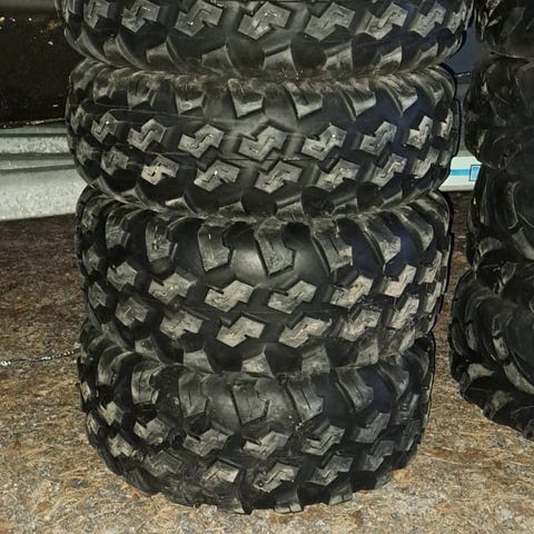 Myynnissä myös laadukkaampi MAXXIS 14" rengas sarja hyvällä kulutus pinnalla. 26/10-14 taakse ja eteen 26/8-14. Viimeiset kuvat ovat Maxxis renkaista. Hinta niille 180€