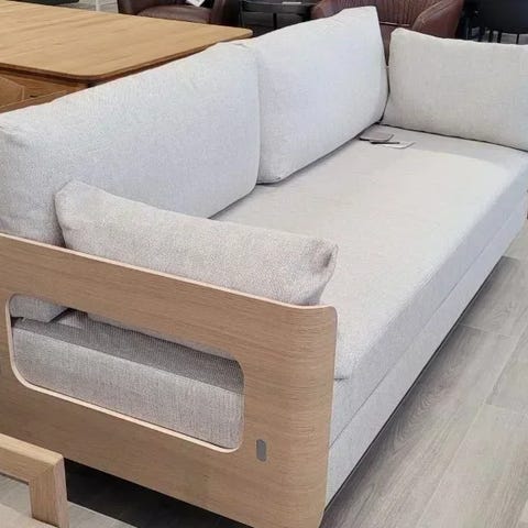 Myydään tarpeettomana uutta vastaava vuodesohva jousituksella. Aitoa tammea beigellä verhoilulla.