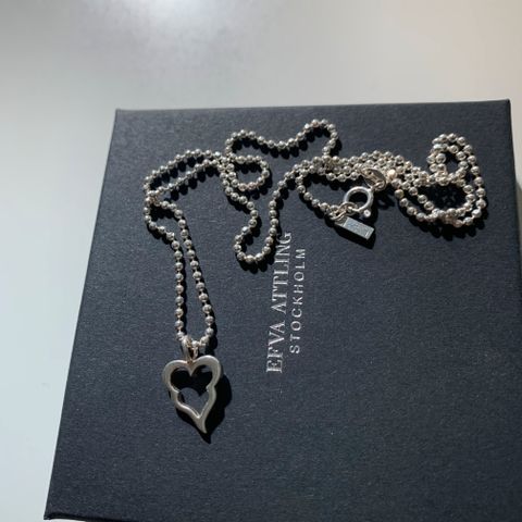 Efva Attling hopeinen (925) Crazy Heart kaulakoru. Saatu lahjaksi vuosia sitten, sydämessä on pientä tasaista naarmua, näkyy läheltä katsottuna. Muutoin ehjä ja kaunis koru. Alkuperäinen korurasia mukaan.