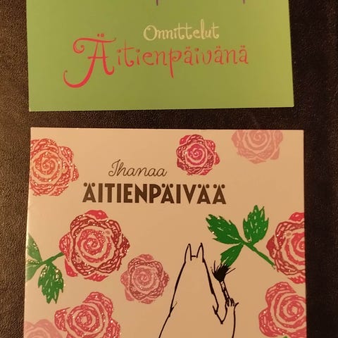 Äitienpäiväkortti, jossa on kukka-aiheinen kuvitus ja teksti kannessa. Kortin sisäpuoli on tyhjä omalle tervehdykselle. Soveltuu äitienpäivätervehdykseen.Kotimainen käsityö.
