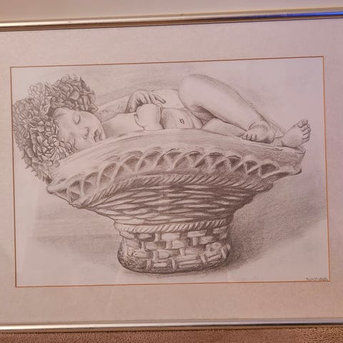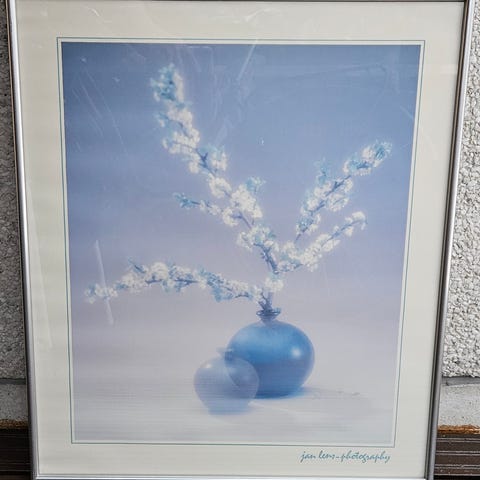 Valkoinen puukehys ohuella kultauksella. Lasi. Vain nouto.