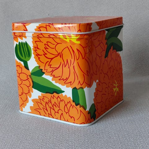Myydään uudenveroinen (käyttämätön) Marimekon Primavera -kuosinen peltipurkki.