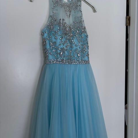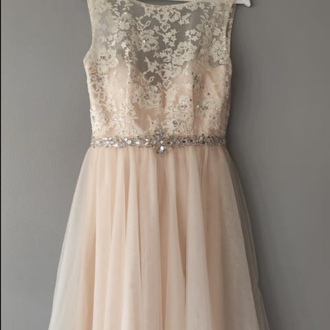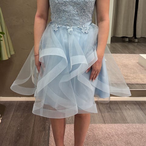 Itsellä ollut käytössä rippijuhlia ja ysiluokan loppujuhlassa. Käytön jälkiä ei ole yhtään joten mekko on kuin uusi.