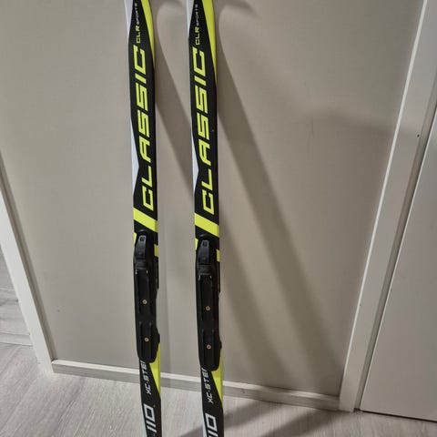 Peltonen lasten sukset ja sauvat. Suksien siteet menevät kenkiin kiinni.