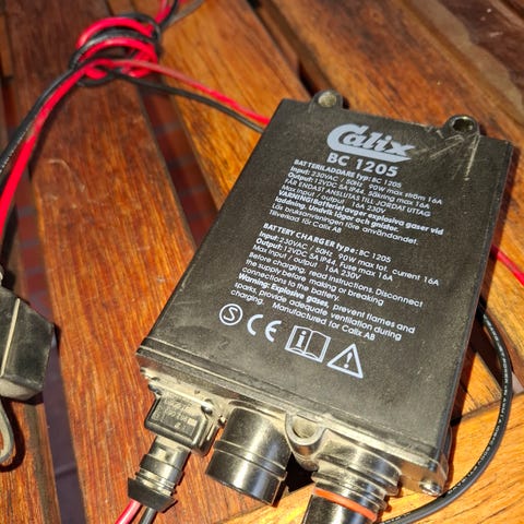 Uusi calix bc 60 akkulaturi ja kuvassa näkyvät asennus tarvikkeet. Lämmitys johdon väliin tuleva akkulaturi.
