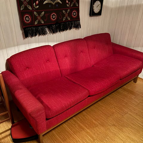 Käytetty, mutta hyvässä kunnossa oleva 3-istuttava kangassohva. Kunnossa ei muuta moitittavaa, kuin että pieniä langanpätkiä on hieman sojottamassa.(Näkyy kuvassa) Hakiessa omat kantajat mukaan! Kissatalous.