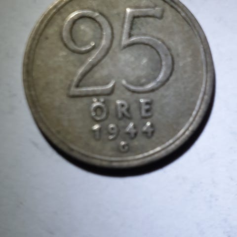 Ruotsalainen kolikko vuodelta 1907, Oskar II, Hopeaa 40%.